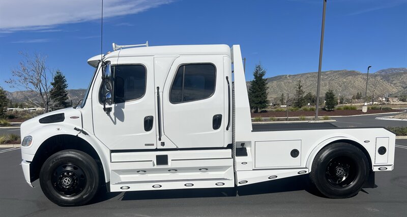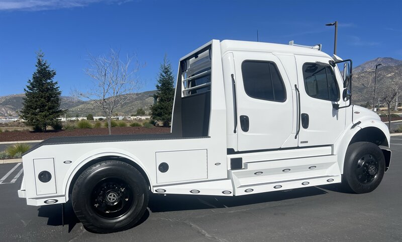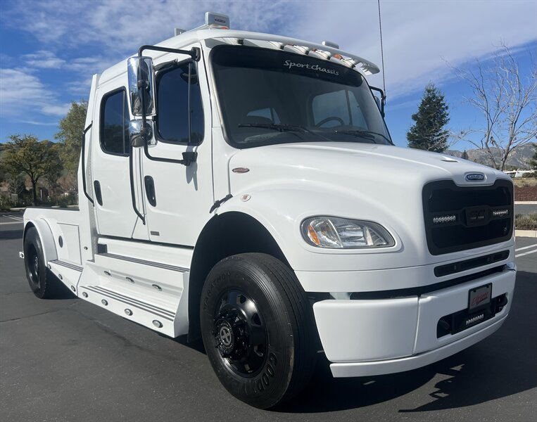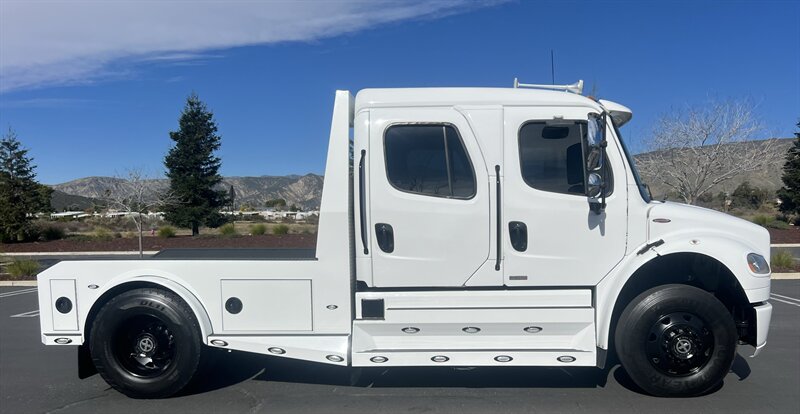 CALL SCOTT 909-225-7277..2012 FREIGHTLINER SPORTCHASSIS RHA114...ONLY $129800..Freightliner M2 Sport 106 Cummins -350 8.3L 350 HP ...1050 LB/FT ... Allison transmission TRV Series 3200, JUST SERVICED, ALL FILTERS, BLACK OUT PACKAGE, AMERICAN RACING WHEELS, CALIBER 9 OFF ROAD GRILL PACKAGE, Exterior Footprint 113 from base of wheels to top of air horn 99 wide from door to door, not including mirrors 277 from grill to bumper Axle, Suspension & Equipment BOSCH hydraulic brake package, 10,000 lb single front axle 10,000 lb taper leaf front suspension Payload capacity 6,161lb Gross vehicle weight rating 19,500lb TRW THP-45 power steering Bilstein front shock absorbers, 11,500 L-Series single rear axle 4.56 axle ratio Trac-tech full time no-spin rear differential All Axles Airliner 11,500lb SportChassis recreational vehicle rear air-suspension Manual dump switch for air suspension with autofill override valve Single rear suspension leveling valve w/ping tank Dual 80 gallon rectangular aluminum fuel tank Alliance fuel/water separator with heated bowl and indicator light Equiflow inboard fuel system w/ auxiliary fuel supply return ports Tires & Wheels F/L Domed Turbo, 22.5X8.25 10-HUB PILOT aluminum wheels 16ply radial tires, Newly designed LED running and brake lights, Cab Interior Spacious luxury class crew cab No CDL required, Short turning radius Backup camera Leather wrapped steering wheel Air-ride premium leather seating. Included camera observation system... Lay down rear sofa Marine grade carpet and protective floor mats USB power ports 115-volt power outlet. Auto locking no-spin rear differential Dual 26 Air Horns. Payment is on approved credit. 180 months at 7.99% plus tax, title, license, doc fee, new tires, 30% down. PLUS dealer added options CALL SCOTT 909-225-7277 E-mail: scottc@extremesportchassis.com