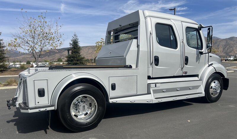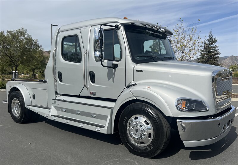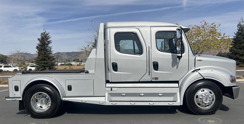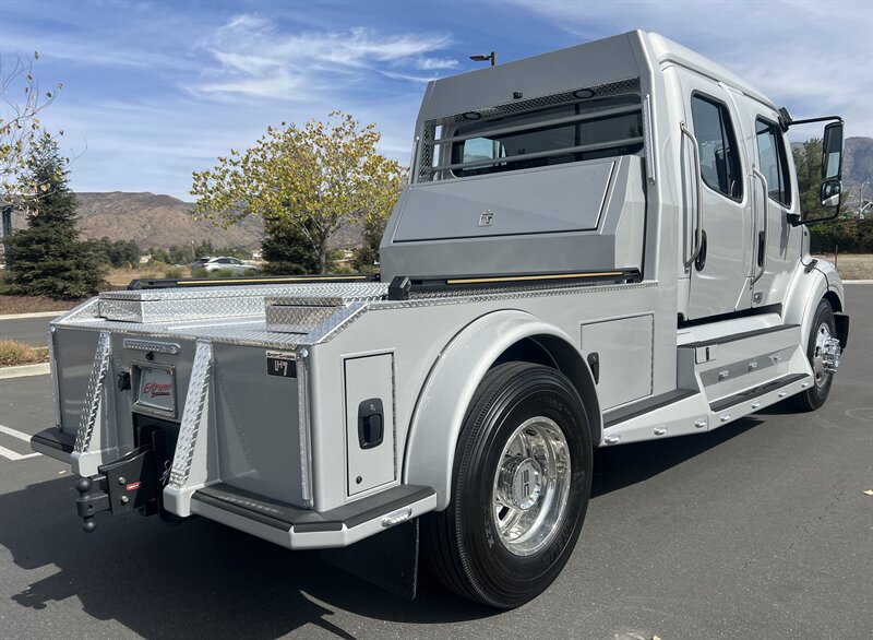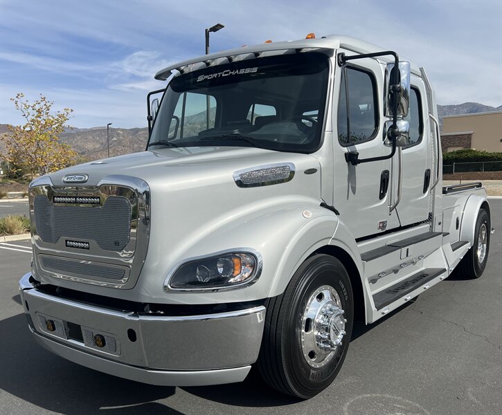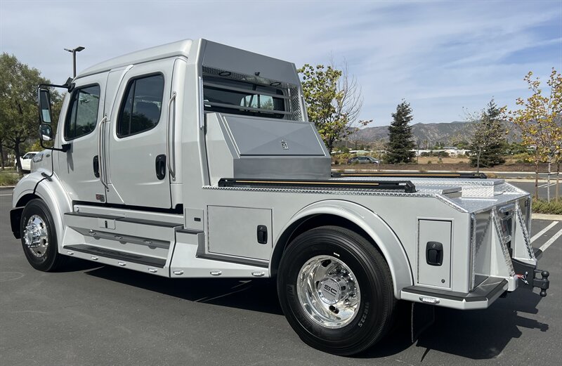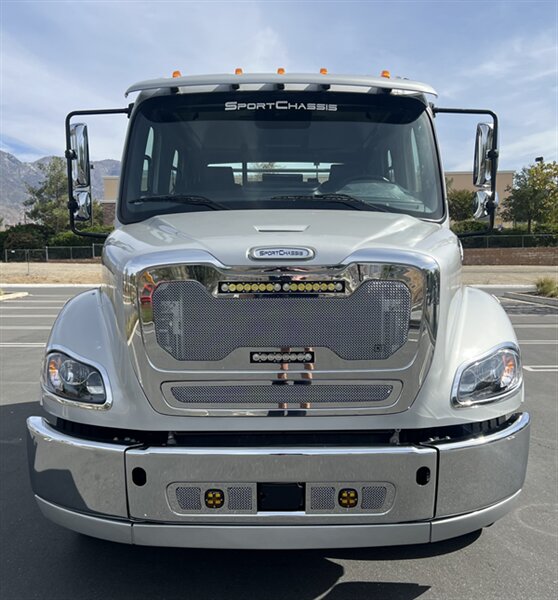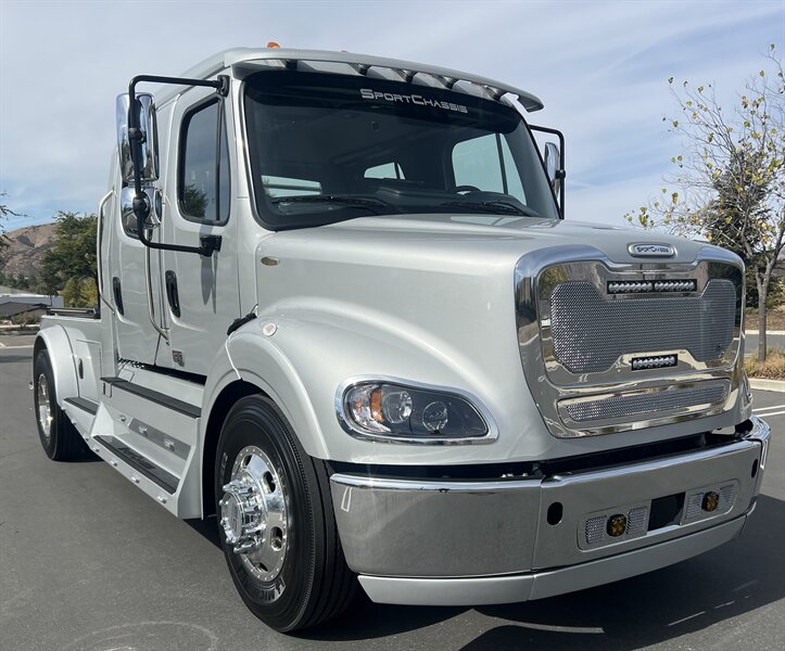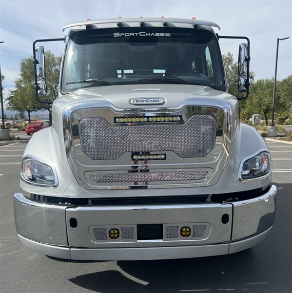 The Sport Chassis LH7 the upgraded heavyweight Design to effortlessly manage your demanding loads. With a robust M2 112 chassis, the LH7 boasts formidable 1850 pounds of torque, providing a remarkable 30% increase over our LH5 models. It’s efficiently driven by the dynamic combination of a Detroit diesel 525 hp DD 13 engine and Allison TRV 4000, All integrated into Class 7 chassis. Get ready for superior performance and heavy duty hauling with the Sport Chassis LH7. Freightliner M2 112 chassis, Aircraft great aluminum body, air ride cabin, air ride suspension, sealed storage compartments, no spin rear differential, Loaded with features and luxury interiors. New narrow taillight design with integrated brake lights and back up illumination. Wrap around step design complements the new rounded edge look. Wider bed, wider bed rail with optional integrated LED marker strip bed illumination. New headache rack with integrated LED lights and sleek style taillights, optional large storage box. Watertight under body storage with internal lighting and Compartment locks. New style doors with flow seamlessly with the round edge tank cover design. Custom aluminum wheels are now a standard in special order and black. Interior footprint 110 inches from base of wheels to top of the cab. 99 inches wide from door-to-door not including mirrors. 277 inches from grill to bumper. Axle and suspension equipment** air brake package, (license endorsement required). Webco 4S/4M anti-lock brakes system. Detroit DA-F-12.0-3 12,000#. FF1 71.5 KPI /3.74 drop single front axle. 12,000lb taper leaf front suspension. Payload capacity 17,069lb. Gross vehicle weight rating 29,630lb. TRW THP-60 power steering, Bilstein shock absorbers, maintenance, free rubber bushings, Meritor RS-23-160 Single Rear drive axle. 4.10 axle ratio, Eaton Trac-tech full time No spin locking differential. Airliner 21000lb Sport Chassis RV rear air suspension. Manual dump switch for air suspension with auto fill override valve. Single Suspension leveling valve. 150 fuel gallon fuel capacity. Alliance fuel/water separator with heated bowl and indicator light. Equiflo inboard fuel system with auxiliary fuel supply return ports. Tires** F/L 22.5x8.25 10 hub pilot aluminum wheels, 255/80R22.5 14 ply radial tires. All new luxury interiors. Newly designed M2 Plus accents and push button controls. Controls on the steering wheel. Air ride seating with seat heat and cool. Optional full massage. Rear air and heat now standard. Premium 5 speaker sound system with a 12'' subwoofer within the center console. All prices are plus FET 12% tax. All prices and payments are plus tax, license, prep, and doc fees. All prices and payments are subject to prior sale. All prices are plus dealer added options. Any questions, Please call the Sales Manager for assistance. Contact Information: 12655 18th Street, Redlands, CA, 92373, Phone CALL SCOTT 909-225-7277 Email: scottc@extremesportchassis.com