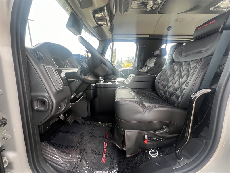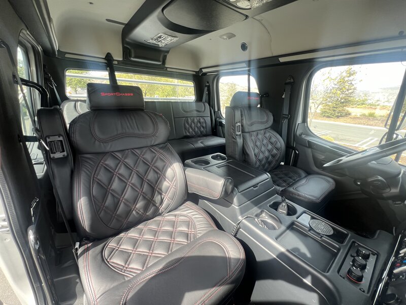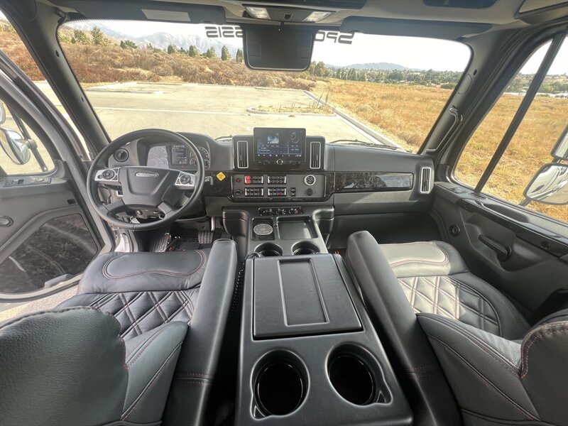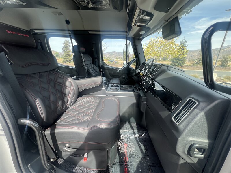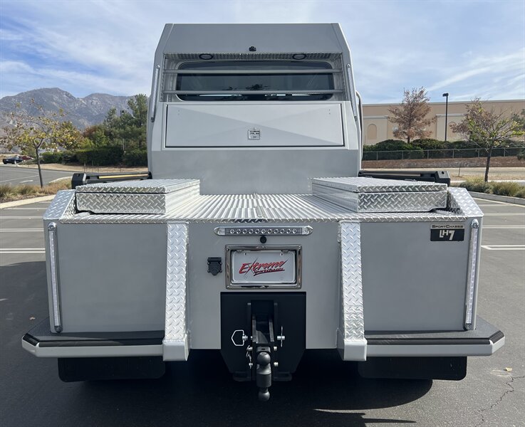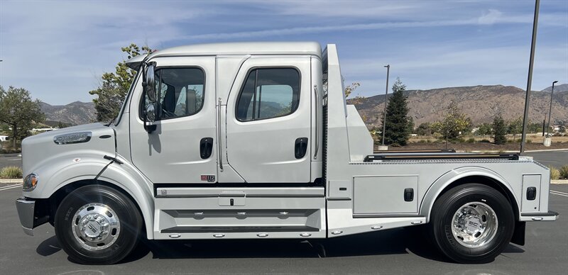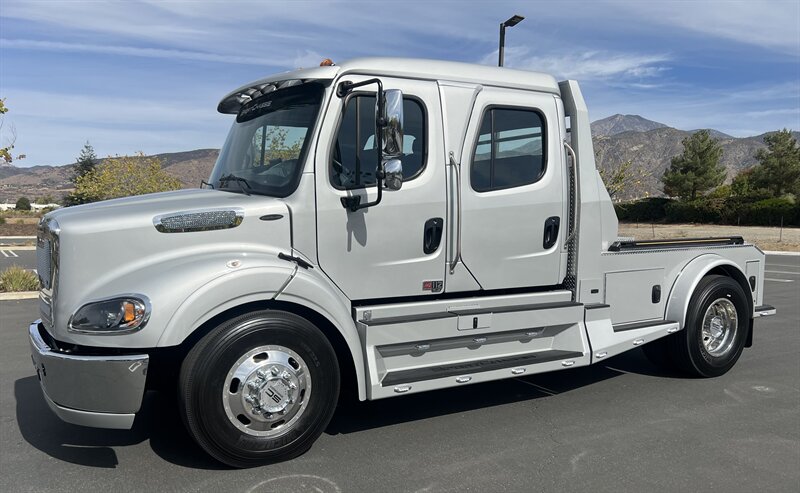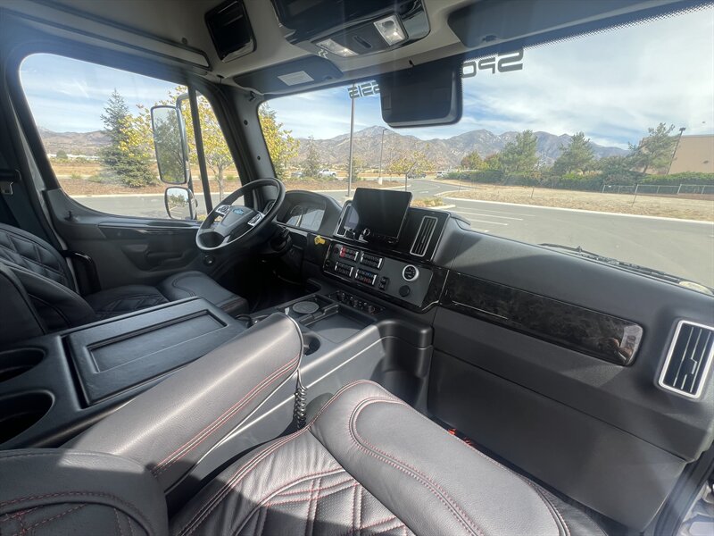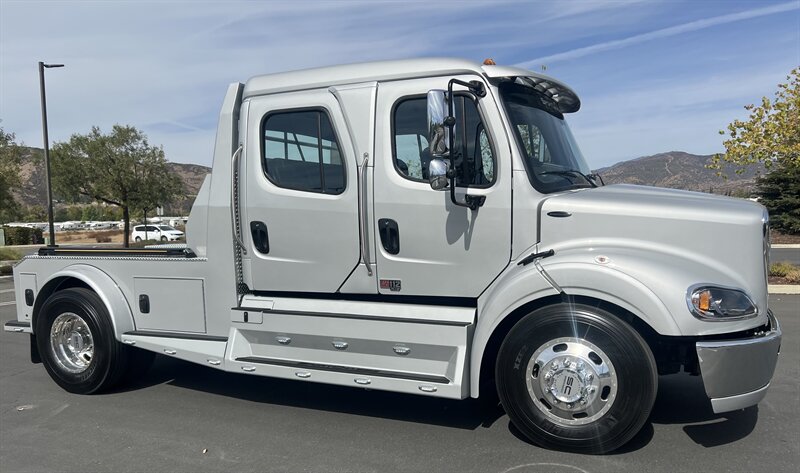 The Sport Chassis LH7 the upgraded heavyweight Design to effortlessly manage your demanding loads. With a robust M2 112 chassis, the LH7 boasts formidable 1850 pounds of torque, providing a remarkable 30% increase over our LH5 models. It’s efficiently driven by the dynamic combination of a Detroit diesel 525 hp DD 13 engine and Allison TRV 4000, All integrated into Class 7 chassis. Get ready for superior performance and heavy duty hauling with the Sport Chassis LH7. Freightliner M2 112 chassis, Aircraft great aluminum body, air ride cabin, air ride suspension, sealed storage compartments, no spin rear differential, Loaded with features and luxury interiors. New narrow taillight design with integrated brake lights and back up illumination. Wrap around step design complements the new rounded edge look. Wider bed, wider bed rail with optional integrated LED marker strip bed illumination. New headache rack with integrated LED lights and sleek style taillights, optional large storage box. Watertight under body storage with internal lighting and Compartment locks. New style doors with flow seamlessly with the round edge tank cover design. Custom aluminum wheels are now a standard in special order and black. Interior footprint 110 inches from base of wheels to top of the cab. 99 inches wide from door-to-door not including mirrors. 277 inches from grill to bumper. Axle and suspension equipment** air brake package, (license endorsement required). Webco 4S/4M anti-lock brakes system. Detroit DA-F-12.0-3 12,000#. FF1 71.5 KPI /3.74 drop single front axle. 12,000lb taper leaf front suspension. Payload capacity 17,069lb. Gross vehicle weight rating 29,630lb. TRW THP-60 power steering, Bilstein shock absorbers, maintenance, free rubber bushings, Meritor RS-23-160 Single Rear drive axle. 4.10 axle ratio, Eaton Trac-tech full time No spin locking differential. Airliner 21000lb Sport Chassis RV rear air suspension. Manual dump switch for air suspension with auto fill override valve. Single Suspension leveling valve. 150 fuel gallon fuel capacity. Alliance fuel/water separator with heated bowl and indicator light. Equiflo inboard fuel system with auxiliary fuel supply return ports. Tires** F/L 22.5x8.25 10 hub pilot aluminum wheels, 255/80R22.5 14 ply radial tires. All new luxury interiors. Newly designed M2 Plus accents and push button controls. Controls on the steering wheel. Air ride seating with seat heat and cool. Optional full massage. Rear air and heat now standard. Premium 5 speaker sound system with a 12'' subwoofer within the center console. All prices are plus FET 12% tax. All prices and payments are plus tax, license, prep, and doc fees. All prices and payments are subject to prior sale. All prices are plus dealer added options. Any questions, Please call the Sales Manager for assistance. Contact Information: 12655 18th Street, Redlands, CA, 92373, Phone CALL SCOTT 909-225-7277 Email: scottc@extremesportchassis.com
