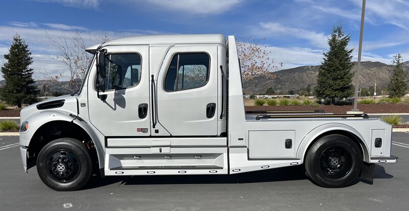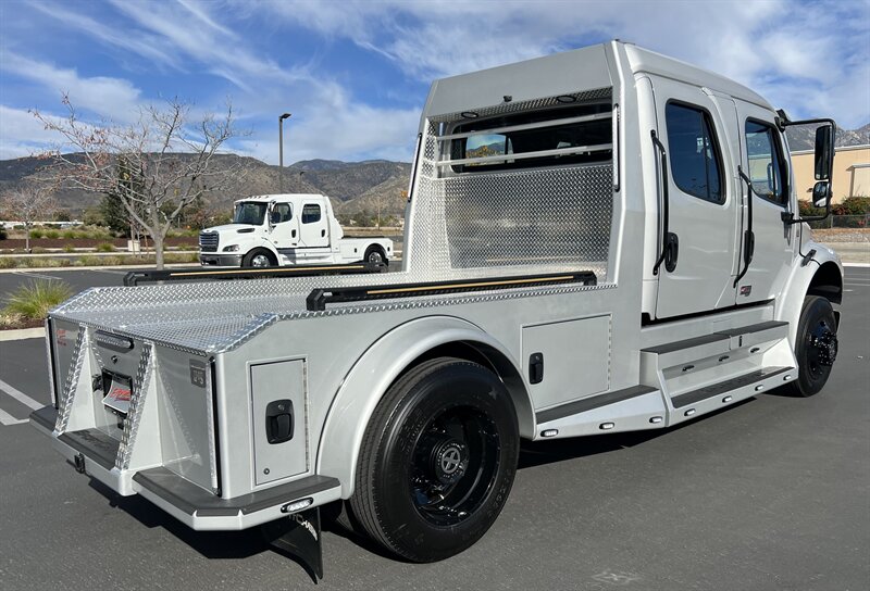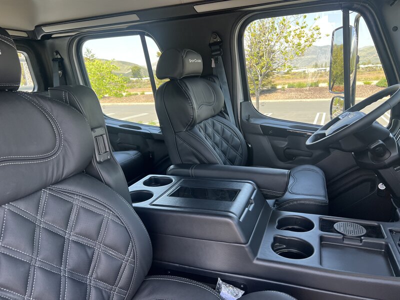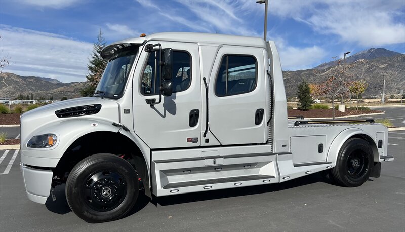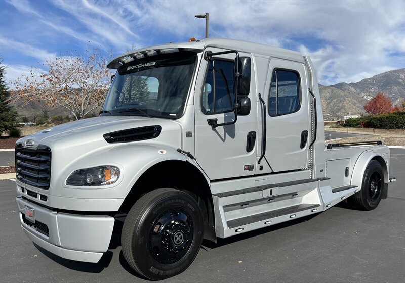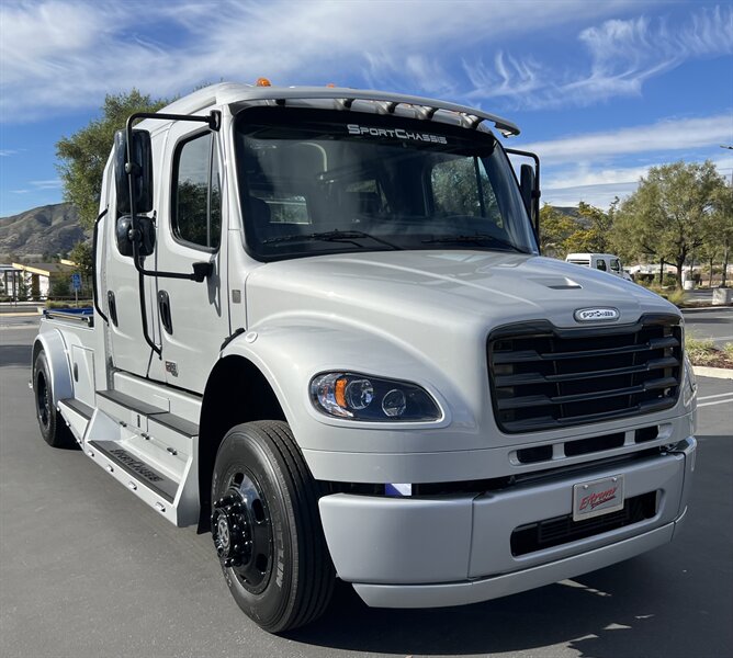 2025 SPORTCHASSIS ALL NEW DESIGN PLUS!! MSRP $236462. EXTREME PRICE $199800**AND ONLY $2148 PER MO* ALL REASONAL OFFERS WILL BE ACCEPTED.. FULL DYNAMAT INTERIOR** HEAT/COOL FULL MASSAGE FRONT SEATS**BLACK OUT PACKAGE**GATOR STEP**BLACK AMERICAN RACING WHEELS** New Features! New Power! The all new SportChassis LH5 is a definite head turner, with its stylish body design and all the fresh new features. We went back to the drawing board and did a total redesign of our hauler to include all the things customers have asked for as well as a total reconfiguration of power-train. This beast is working with a new gear ratio in the rear differential and a much more powerful shift pattern. • Freightliner M2 Sport 106* CUMMINS L9 360 hp 1050 torque**Allison transmission TRV Series 3200 • Aircraft Grade Aluminum Body • Air-Ride Cab and Suspension • Sealed Storage Compartments • No-Spin Rear Differential. New taillight design with integrated break lights and backup illumination Wrap around step design compliments the new rounded edge look Wider bedrail with optional integrated LED marker strip and bed illumination New contoured headache rack with integrated LED bed lights and new style taillights Optional large storage box with 24 cubic feet of storage space for those oversized items. Watertight underbody storage with internal lighting and locks that integrate with keyless entry New style fuel door which flows seamlessly with the round edge tank cover design Soft style tread step that is designed to perform in wet conditions and looks great in any weather Custom aluminum wheels are now a standard and they can be special ordered in black with accents LED headlights and marker lights are now standard on all units. Luxury air ride seating with seat heat and air lumbar adjustments Premium 5 speaker sound system with a 12’ subwoofer within the center console Sports car style leather wrapped steering wheel with simulated woodgrain accents Rear heat and air system is now standard on all SportChassis models Pre-configured for in cab adjustment and the pressure gauge for air-ride hitch Large display multimedia head unit with voice control and device integration. All payments are based on 30% down, FICA score 780 or higher. 120 months at 11.99 approved credit. Months bases on units model year. All prices and payments are plus tax, license, prep, and doc fees. All prices and payments are subject to prior sale. All prices are plus dealer added options. Any questions, Please call the Sales Manager for assistance. Contact Information: 12655 18th Street, Redlands, CA, 92373, Phone CALL SCOTT 909-225-7277 Email: scottc@extremesportchassis.com